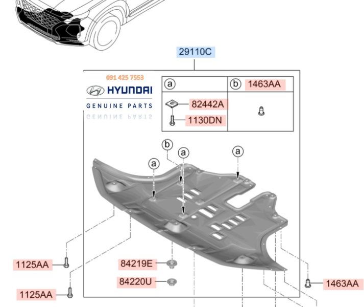 Tấm chắn bùn động cơ xe SantaFe chính hãng
